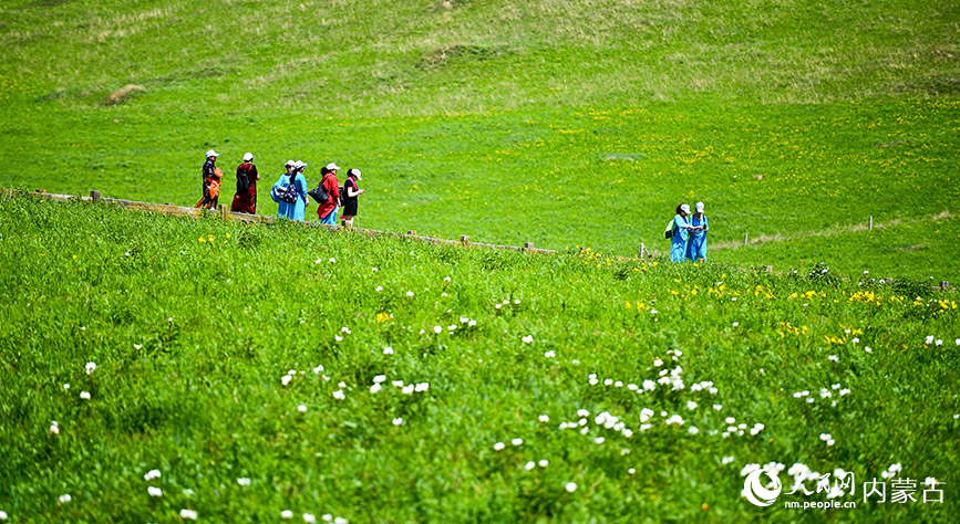 Tourists enjoy the picturesque view in the Ulgai Grassland in Xilingol League, north China’s Inner Mongolia Autonomous Region. (People’s Daily Online/Li Rui)