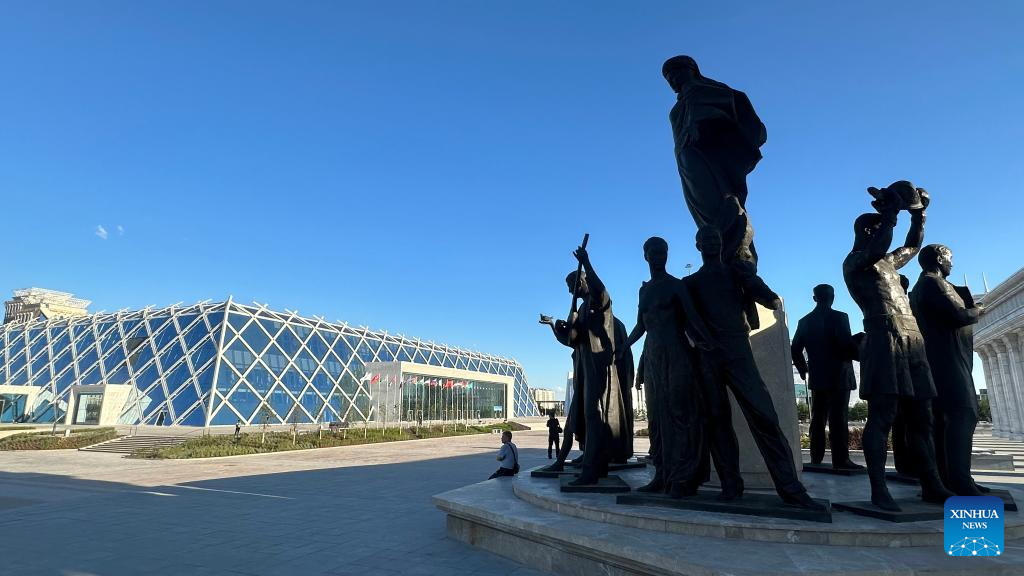 This photo taken on June 29, 2024 shows a monument at the Independence Square of Astana, Kazakhstan. (Xinhua/Wang Jianhua)