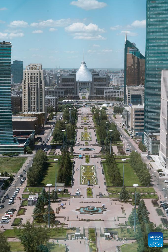 This photo taken on June 29, 2024 shows a view of Astana's central axis, in Astana, Kazakhstan. (Xinhua/Wang Jianhua)
