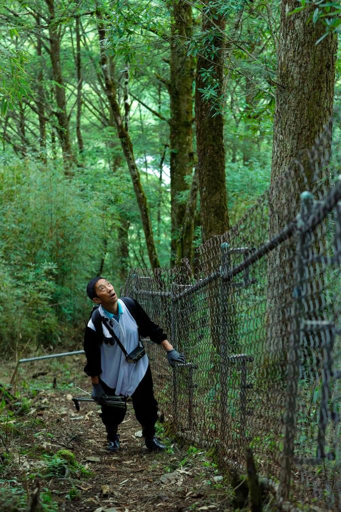 Staff member Mu Shijie looks for giant panda cubs while patrolling the second-phase giant panda wild training fields of Tiantai Mountain in Wolong National Nature Reserve in southwest China's Sichuan Province, June 24, 2024. (Xinhua/Shen Bohan)