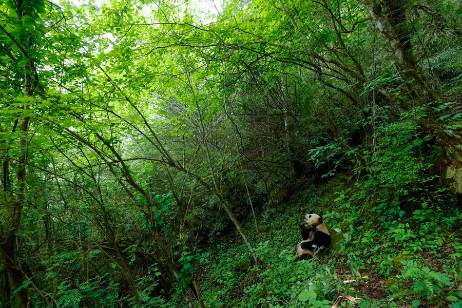 WOLONG, June 30 (Xinhua) -- In recent years, China has made significant progress in panda conservation through a series of measures, including forest and wildlife protection as well as the construction of giant panda national parks. The wild giant panda population in China has grown from about 1,100 in the 1980s to nearly 1,900.