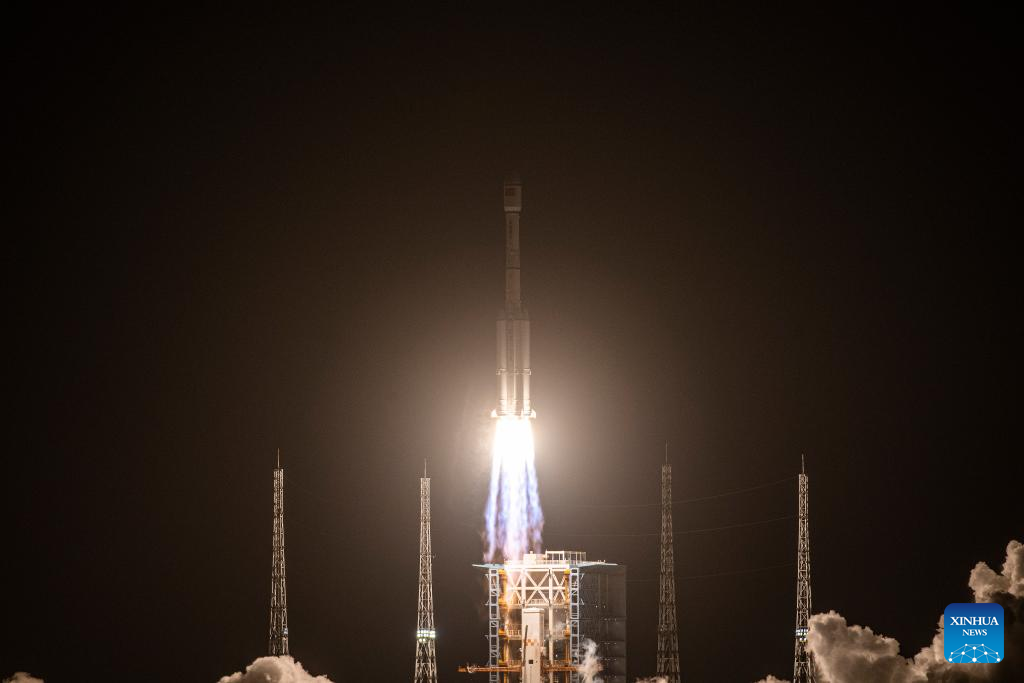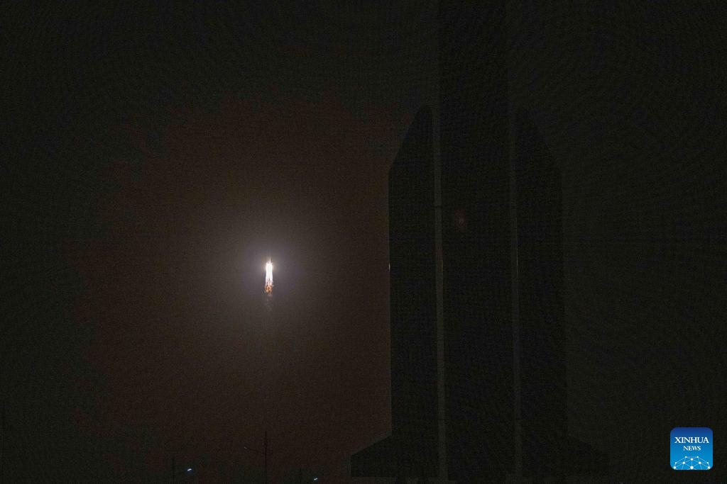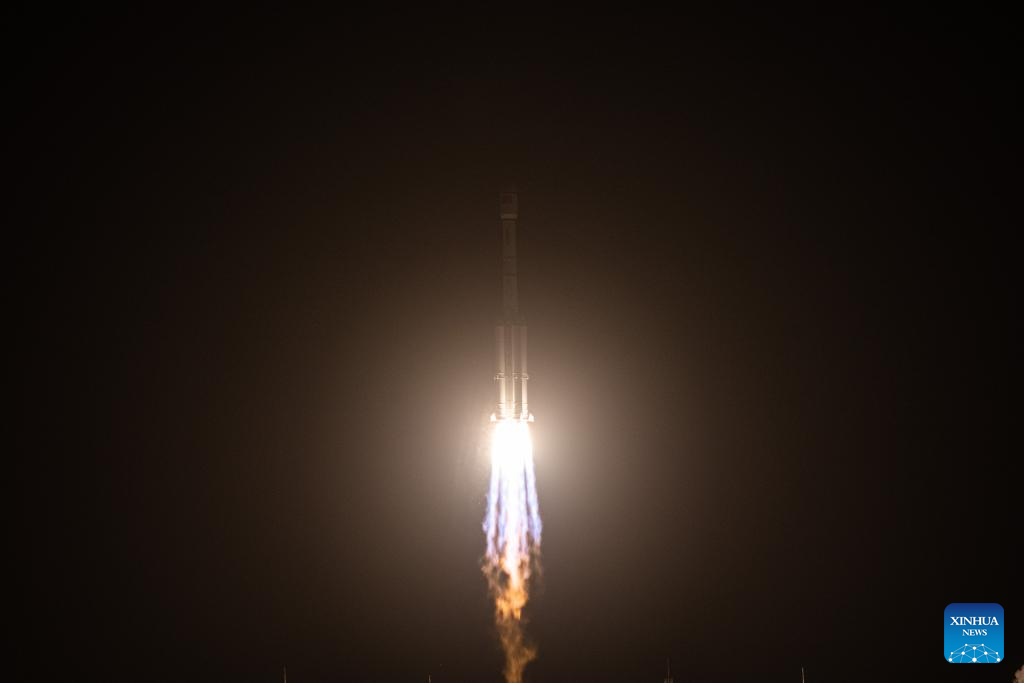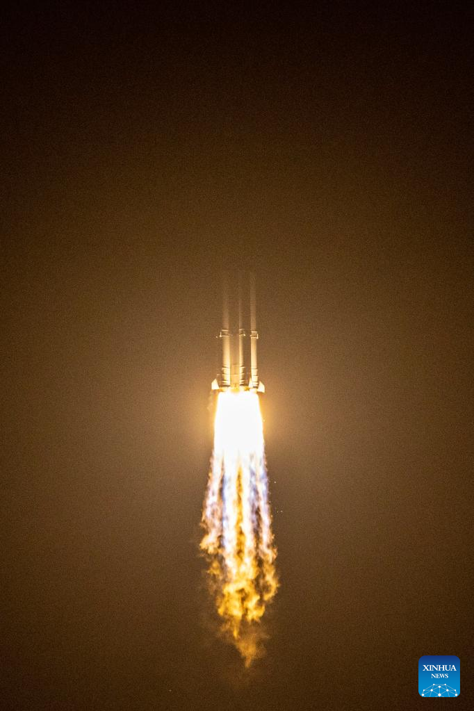 A modified version of the Long March-7 carrier rocket carrying the Zhongxing-3A satellite blasts off from the Wenchang Space Launch Site on the coast of southern island province of Hainan, June 29, 2024. (Xinhua/Pu Xiaoxu)