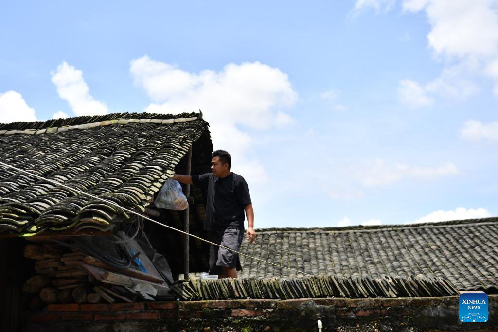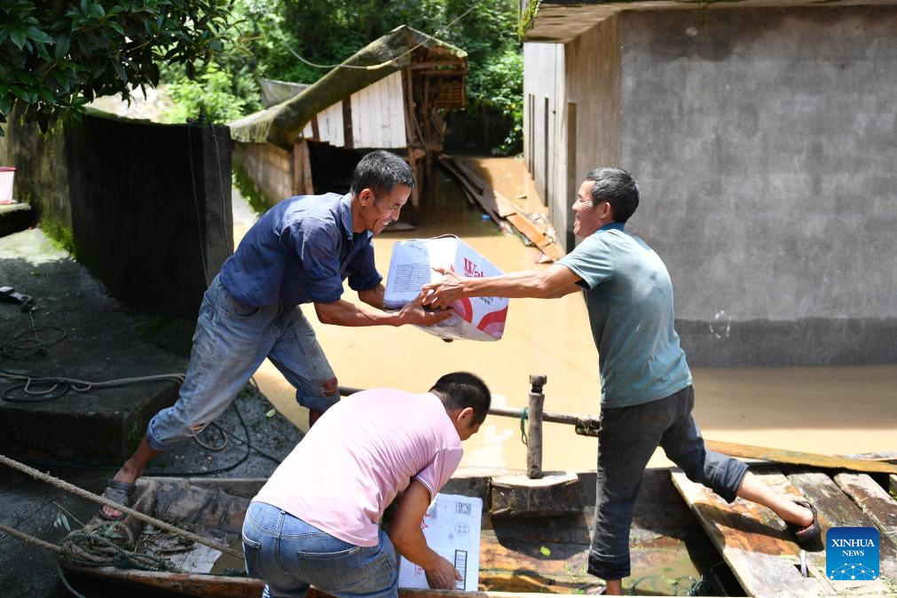 Villagers transfer daily necessities at Lujiawan Village in Chenyang Town, Chenxi County, central China's Hunan Province, July 2, 2024. (Xinhua/Chen Zhenhai)?