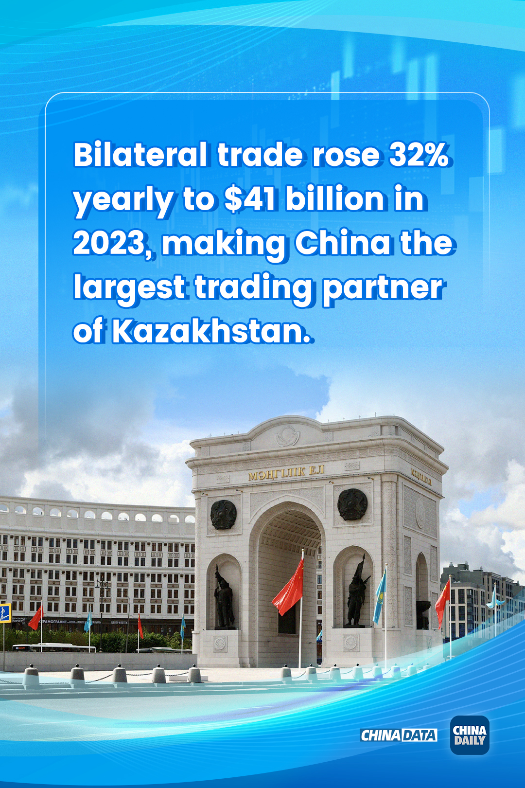 Editor's note: China and Kazakhstan have witnessed flourishing trade and economic cooperation. Last year, bilateral trade between the two countries rose 32 percent year-on-year to $41 billion, making China the largest trading partner of Kazakhstan.