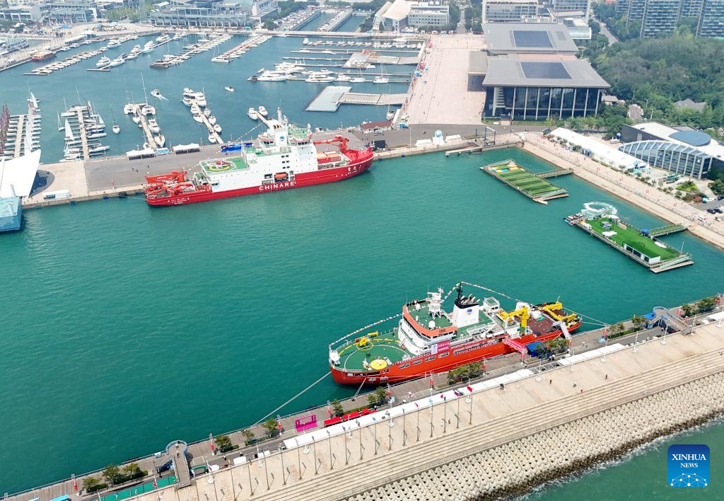 QINGDAO, July 3 (Xinhua) -- Two made-in-China polar icebreakers, Xuelong 2 and Jidi, opened for public viewing on Wednesday in Qingdao, a port city in east China's Shandong Province.