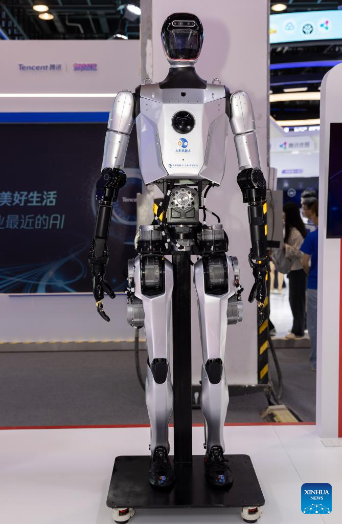 A humanoid robot is on display during the 2024 World AI Conference in Shanghai, east China, July 4, 2024. (Xinhua/Wang Xiang)