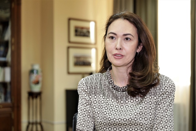 Gulnar Shaimergenova, director of the Kazakhstan's China Studies Center (CSC), receives an interview with People's Daily Online. (Photo provided to People's Daily Online)