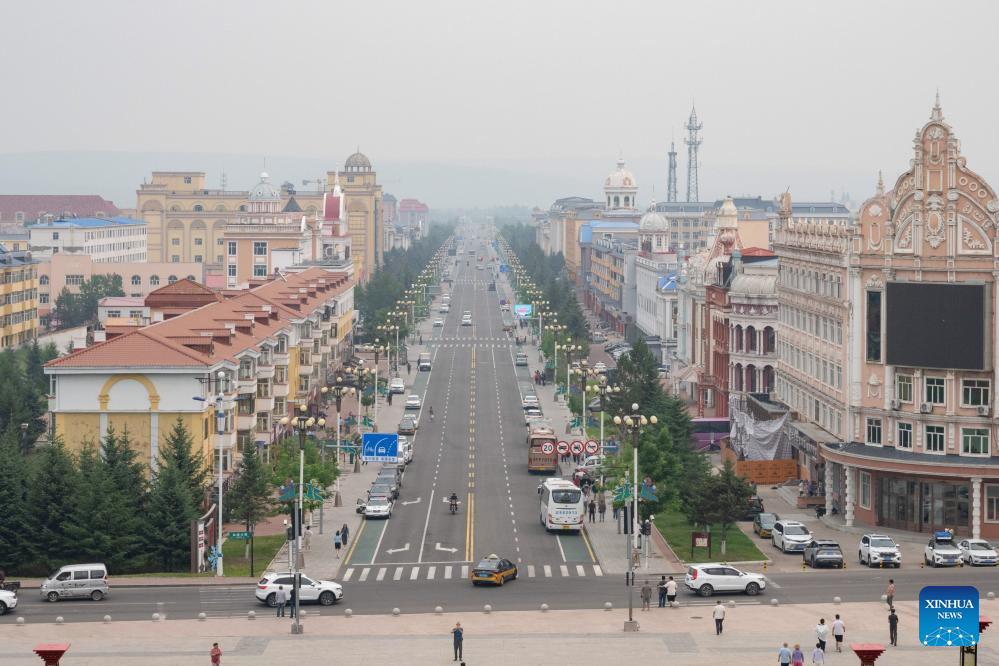 This photo taken on July 4, 2024 shows a city view of Mohe, northeast China's Heilongjiang Province. Lots of visitors travel to Mohe, China's northernmost city, in summer to enjoy some leisure time. In recent years, Mohe, focusing on its unique location, continues to improve its infrastructure and develop tourism products to attract more tourists in all seasons. (Xinhua/Xie Jianfei)