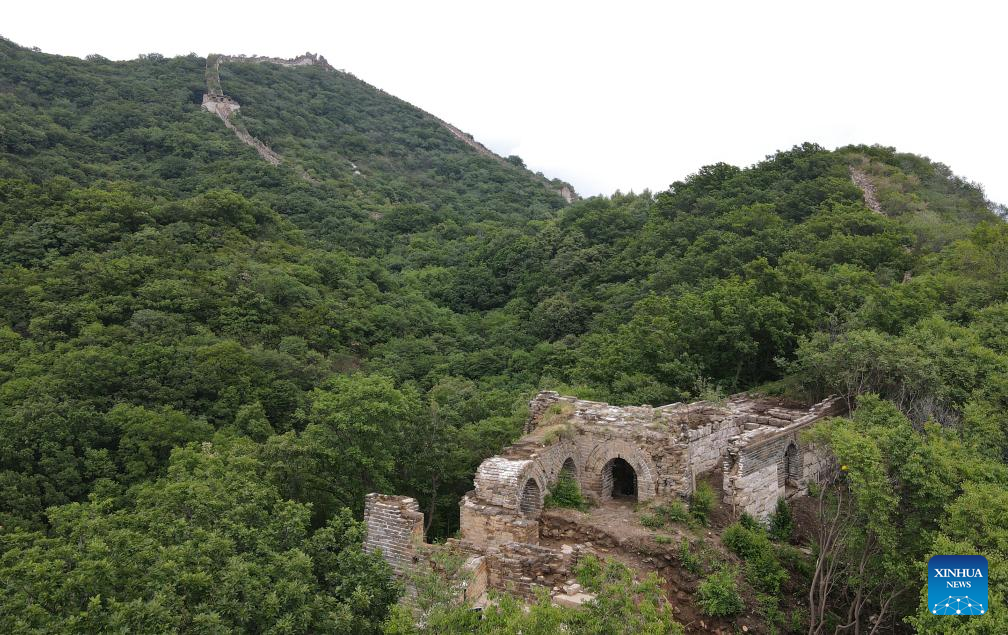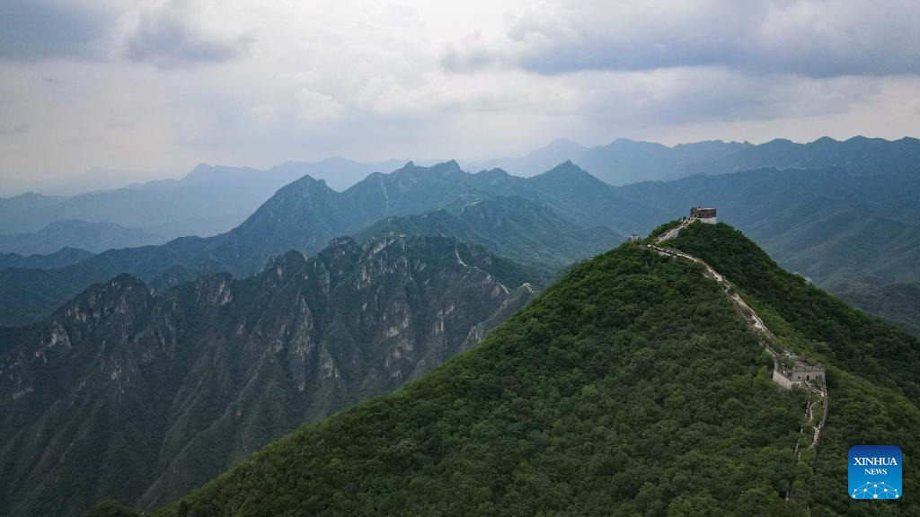 An aerial drone photo taken on July 1, 2024 shows the Jiankou section of the Great Wall in Beijing, capital of China.