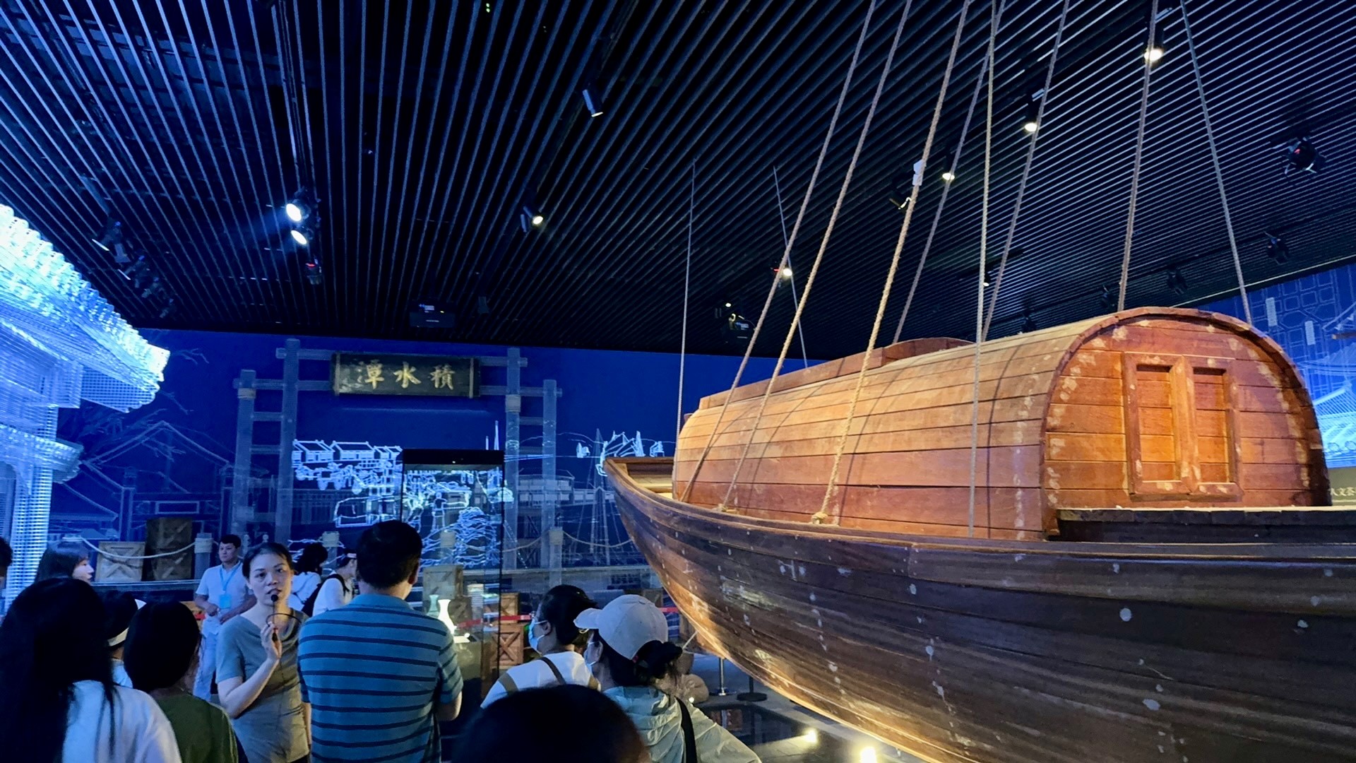 Photo taken on July 4, 2024, at the Grand Canal Museum of Beijing showcases how the Grand Canal is not merely a waterway but a cultural artery that has nurtured both material cultural heritage and intangible cultural heritage throughout its history. (People’s Daily Online/Xue Yanyan)