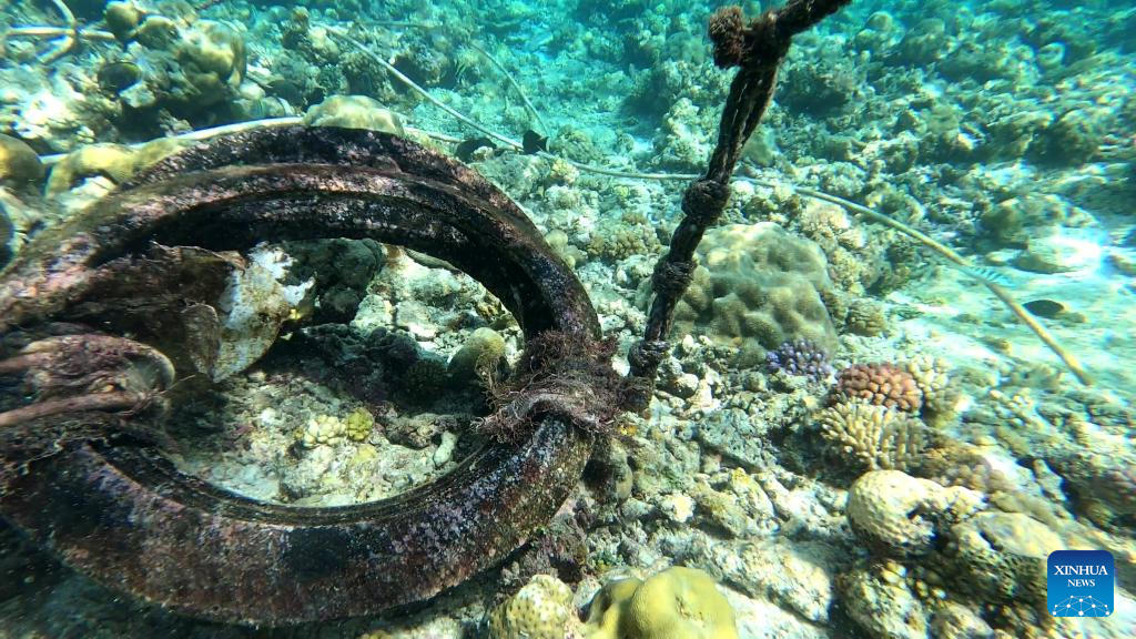 This photo shows the fishing nets on the seabed in the waters of China's Ren'ai Jiao. (South China Sea Ecological Center and the South China Sea Development Research Institute of China's Ministry of Natural Resources/Handout via Xinhua)
