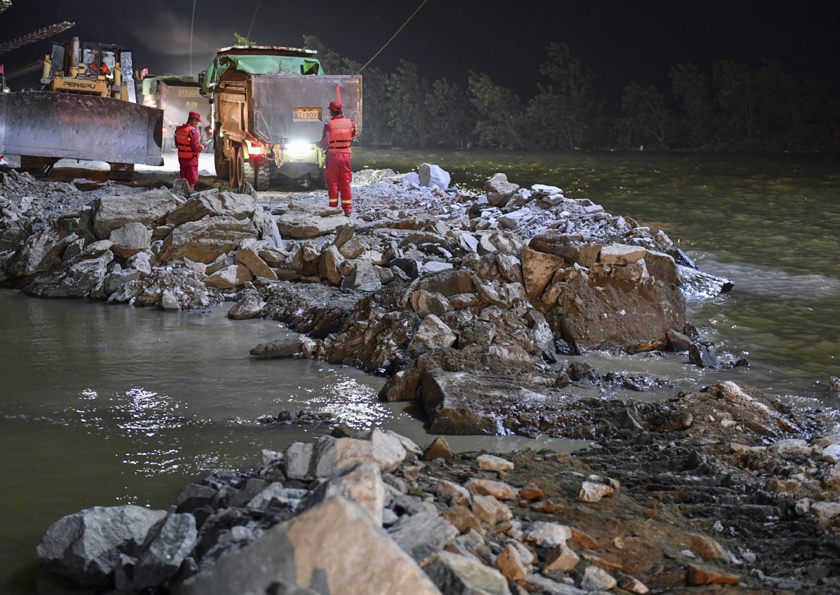 Zhang Yingchun, Hunan's executive vice-governor, said more than 100,000 cubic meters of rock have been used in sealing off the breach, and crews had been sealing off 3.5 meters of the breach an hour.