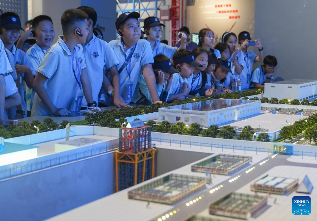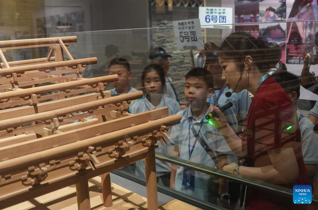 Youngsters visit China Architecture Science and Technology Museum in Wuhan, central China's Hubei Province, July 8, 2024. A group of youngsters from Hong Kong and Macao and guests participated in a study tour in Wuhan, jointly hosted by the Hubei Provincial Department of Culture and Tourism and China Construction Third Engineering Bureau Group Co., LTD. (Xinhua/Du Zixuan)