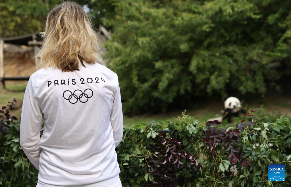 Giant panda Yuan Zai is seen before the relay of the Olympic flame of Paris 2024 at Beauval Zoo in Saint-Aignan, central France, July 8, 2024. (Xinhua/Gao Jing)