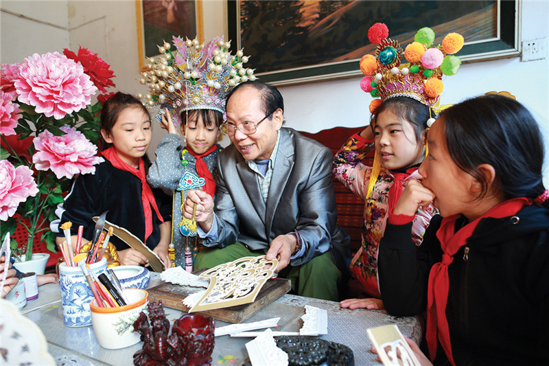 Inheritor in E China's Anhui dedicated to passing on headdress making craft