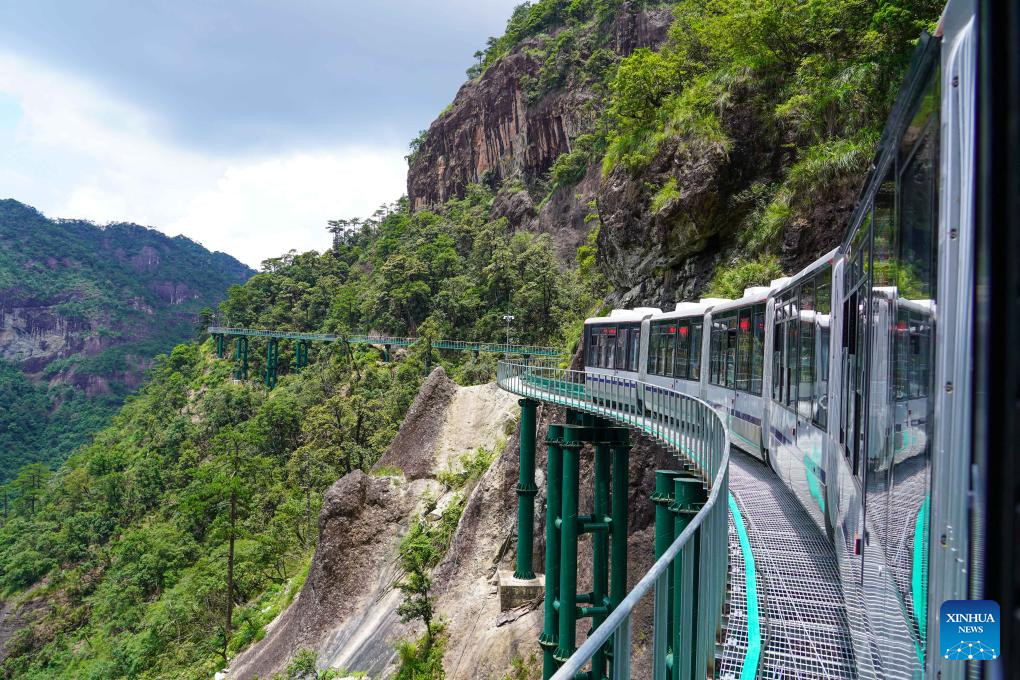 NANCHANG, July 11 (Xinhua) -- Can you imagine taking a shuttle train along a cliff, instead of trekking hours to the top of a mountain, looking for a perfect camera angle? Such a heart-stirring scene will soon turn into reality.