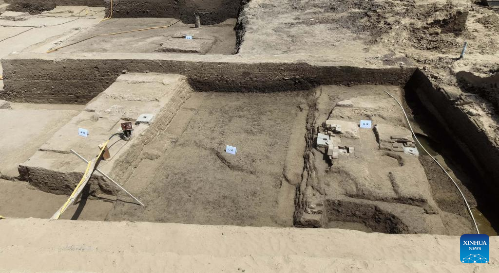 This photo taken on June 18, 2024 shows the ruins of an ancient building near the ruins of Jinglong Gate from the Northern Song Dynasty in Kaifeng, central China's Henan Province. (Xinhua/Yuan Yueming)