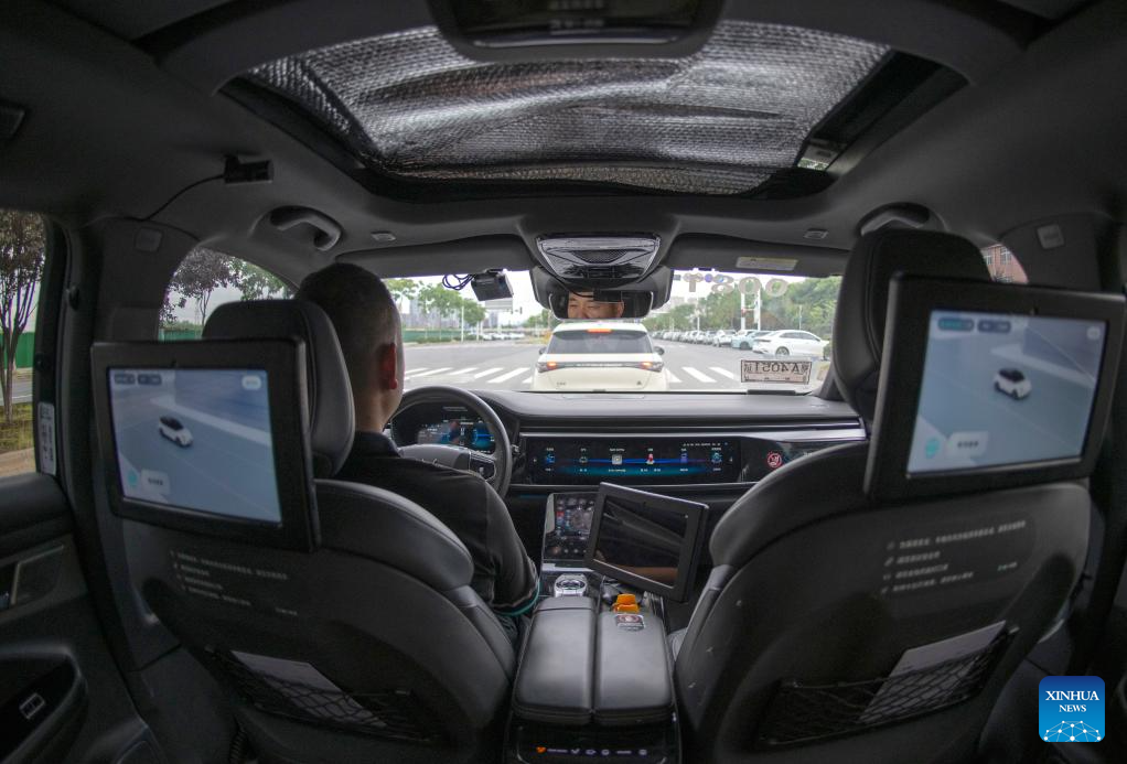 Intelligent connected vehicle tester Li Cheng is pictured during a road test in Wuhan, central China's Hubei Province, July 4, 2024. Thanks to advances in electrification, networking, and intelligent transformation, along with progress in autonomous driving technologies, self-driving vehicles are gradually becoming a reality. As the industry develops, more professionals are becoming testers of self-driving vehicles. The profession "intelligent connected vehicle tester" was listed as one of 19 new professions by the Ministry of Human Resources and Social Security earlier this year. (Xinhua/Wu Zhizun)