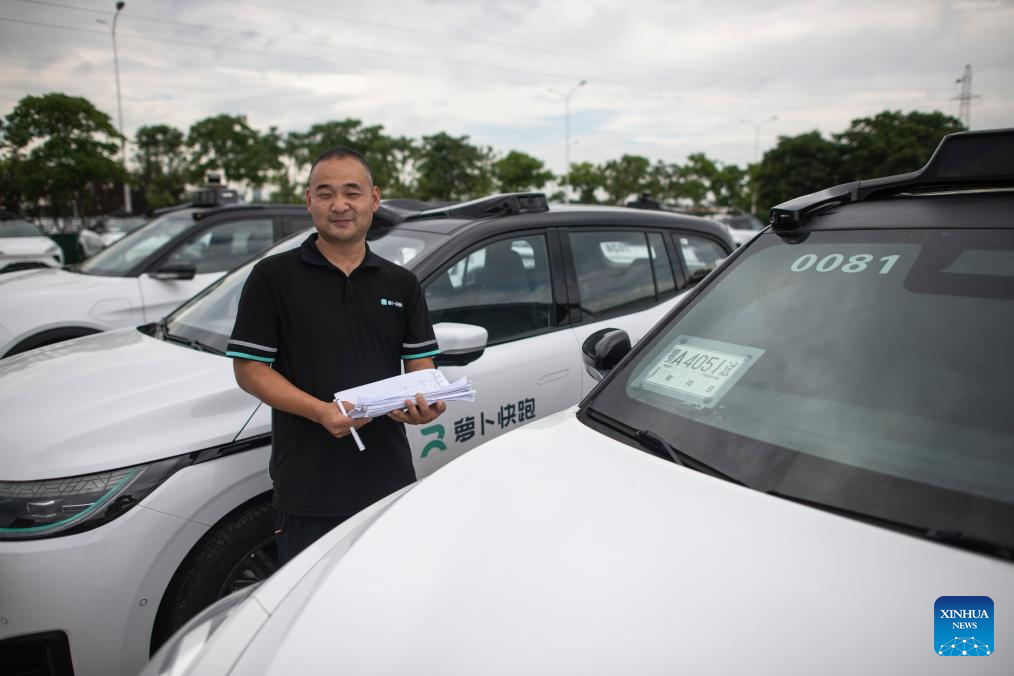 Intelligent connected vehicle tester Li Cheng is pictured in Wuhan, central China's Hubei Province, July 4, 2024. Thanks to advances in electrification, networking, and intelligent transformation, along with progress in autonomous driving technologies, self-driving vehicles are gradually becoming a reality. As the industry develops, more professionals are becoming testers of self-driving vehicles. The profession "intelligent connected vehicle tester" was listed as one of 19 new professions by the Ministry of Human Resources and Social Security earlier this year. (Xinhua/Wu Zhizun)