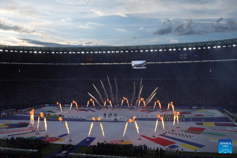 Artists perform during the show before the UEFA Euro 2024 final match between England and Spain in Berlin, Germany, July 14, 2024. (Xinhua/Bai Xuefei)