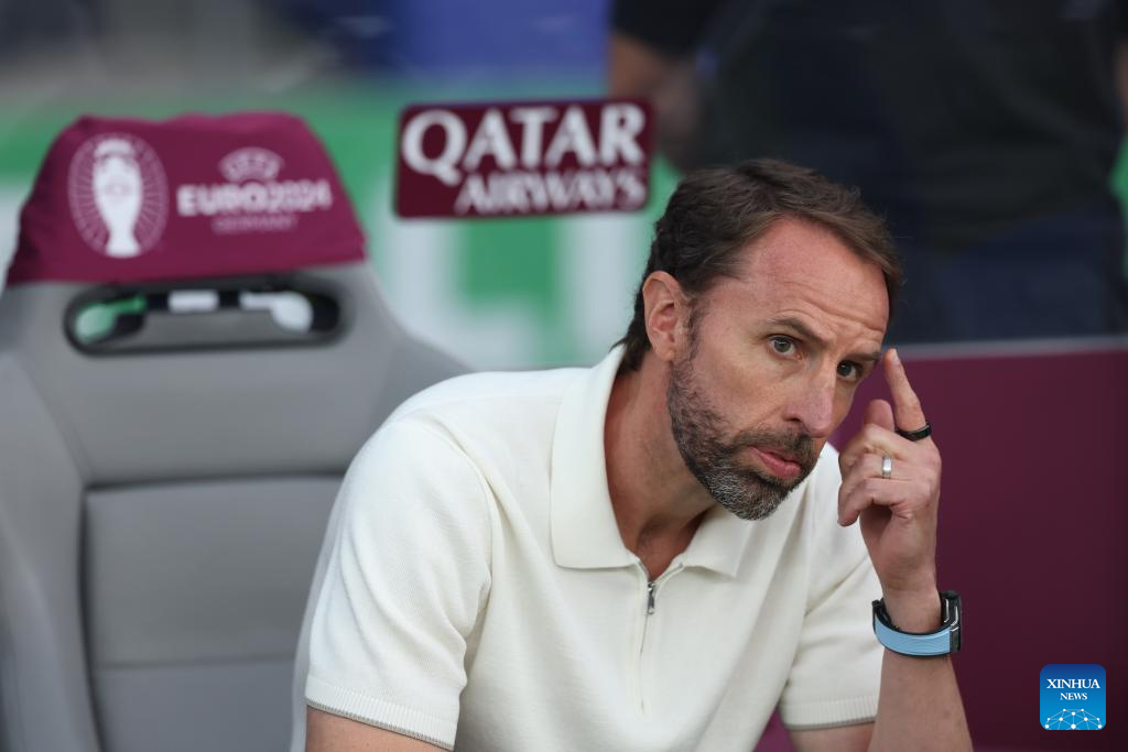 England's head coach Gareth Southgate looks on before the UEFA Euro 2024 final match between England and Spain in Berlin, Germany, July 14, 2024. (Xinhua/Pan Yulong)