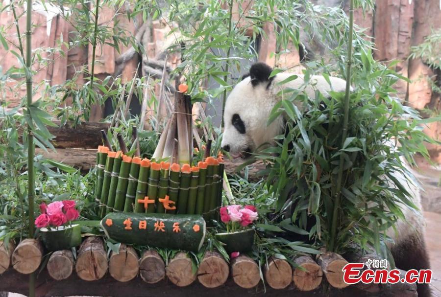 Giant panda celebrates 17th birthday at Jinan Zoo