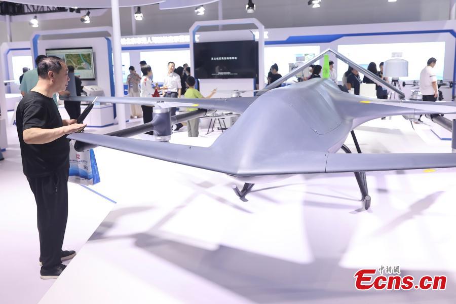 A vertical take-off and landing drone is on display at the 26th China Beijing International High-tech Expo, July 13, 2024. (Photo: China News Service/Yi Haifei)