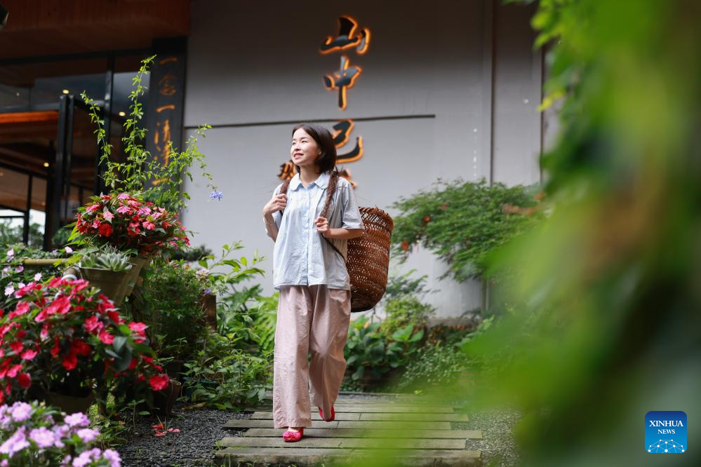 A college graduate newly recruited by a homestay is out for business at Dazhai Village of Longsheng County, south China's Guangxi Zhuang Autonomous Region, June 26, 2024. (Xinhua/Liu Xu)