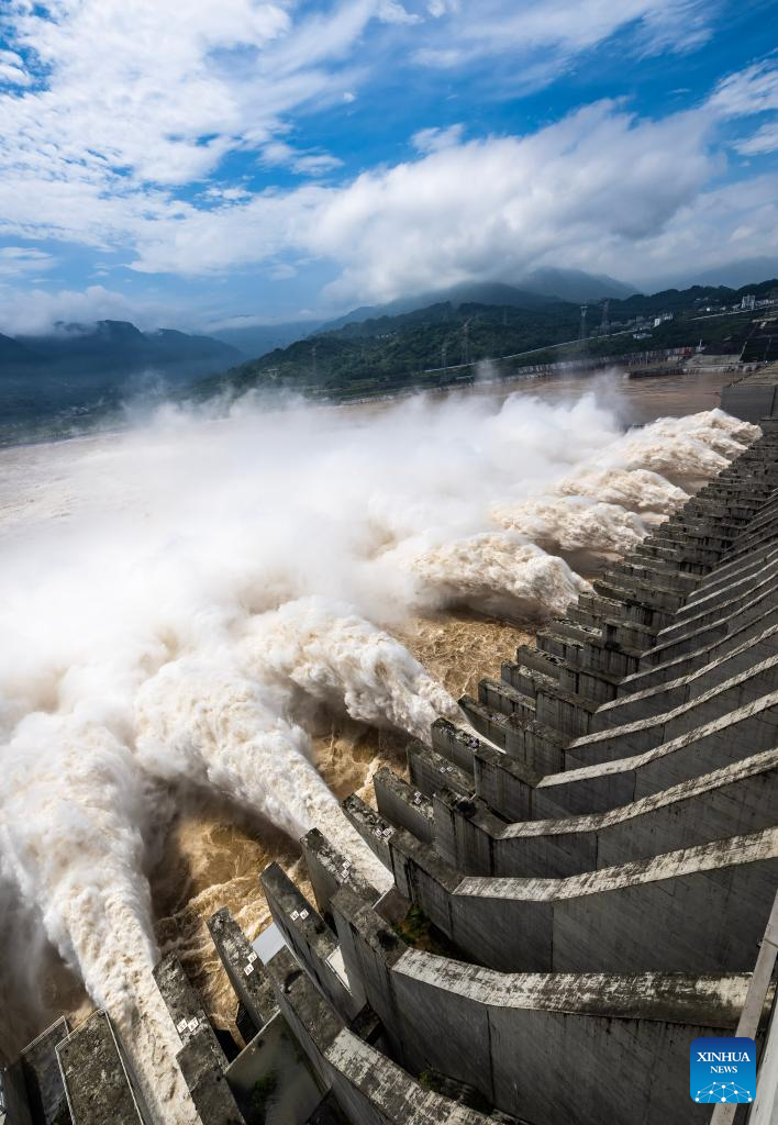 Three Gorges Dam in central China's Hubei discharges floods