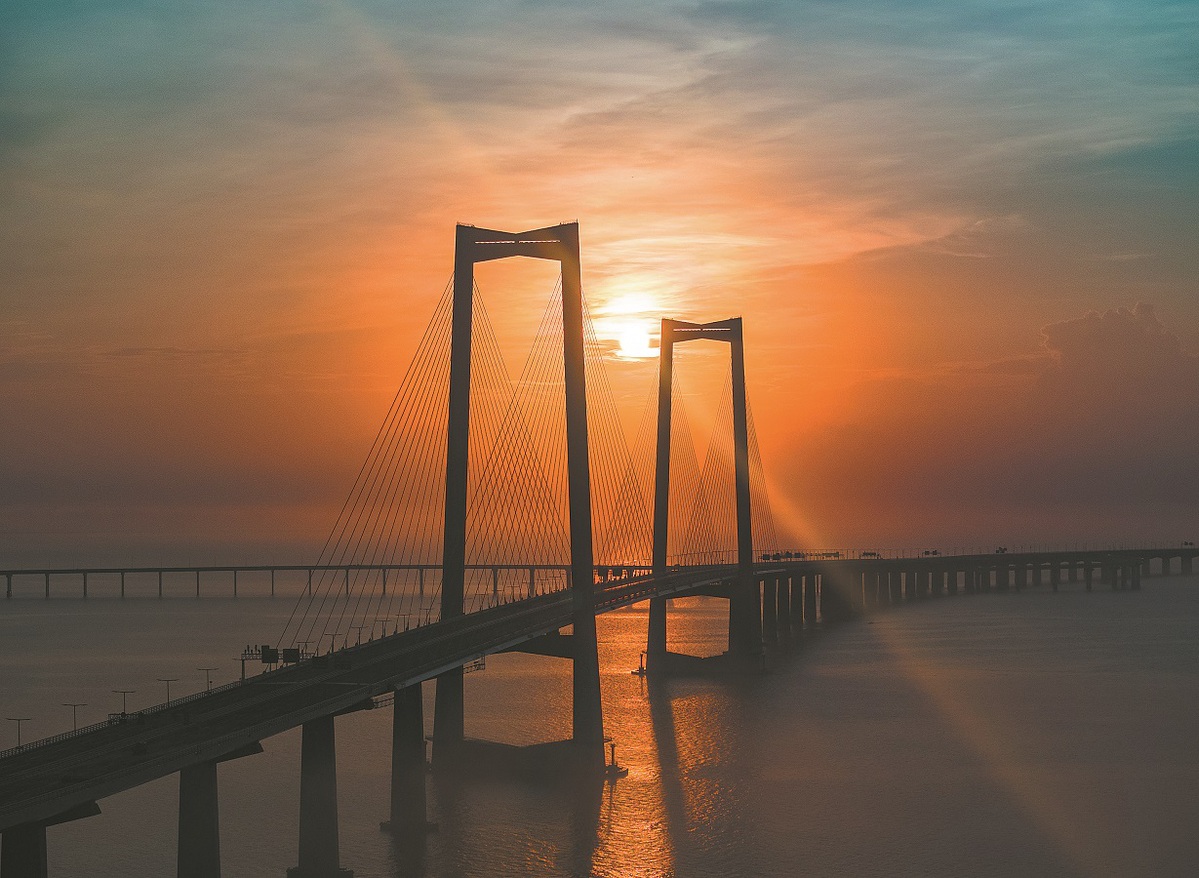 The new infrastructure project quickly became a trending topic on social media platforms, with photos of drivers breaking traffic rules to capture sunset views from the bridge, which went viral.