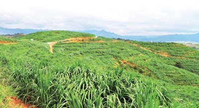 Guanling has promoted the cultivation of the hybrid giant napier grass, a high-yielding grass variety that is effective in controlling rock desertification and ensures a stable food supply to Guanling cattle, a fine yellow cattle breed in Guizhou. The county has explored a development model of green industries including the farming of Guanling cattle and the planting of napier grass.