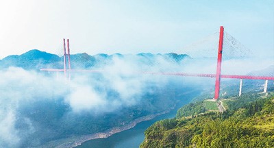 The 2,237-meter-long bridge is the world's first, with a span exceeding 1 kilometer in a mountainous canyon area. It's also Guizhou's first "super bridge" that allows visitors to enter its structure.