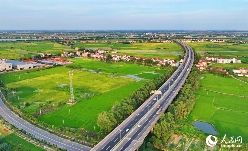 Photo shows a beautiful view near Xijiang village of Nanxin township, in Nanchang county, Nanchang city, the capital of east China's Jiangxi Province, and an expressway runs through here. (People's Daily Online/Zhu Haipeng)