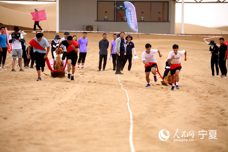 Contestants compete in a sand boat race during the desert sports contest at Shapotou scenic spot in Zhongwei city, northwest China's Ningxia Hui Autonomous Region. (People's Daily Online/Yan Mengjie)