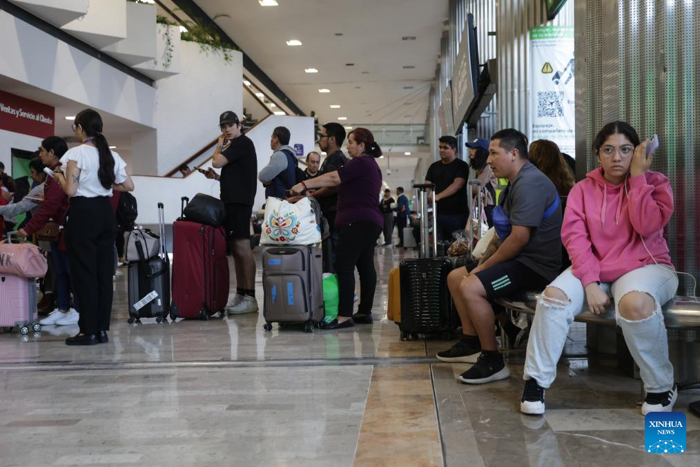 Passengers wait at Benito Juarez International Airport in Mexico City, Mexico, on July 19, 2024. A faulty software update from cybersecurity firm CrowdStrike Friday morning has affected computers-running Microsoft Windows at organizations, causing major IT outage, takig out bnanks, airlines and businesses globally. (Photo by Francisco Canedo/Xinhua)