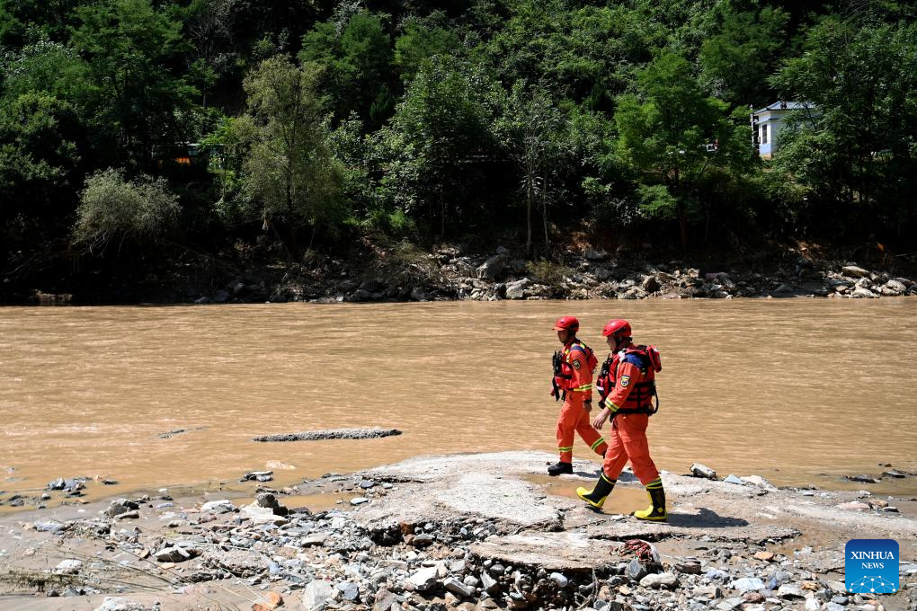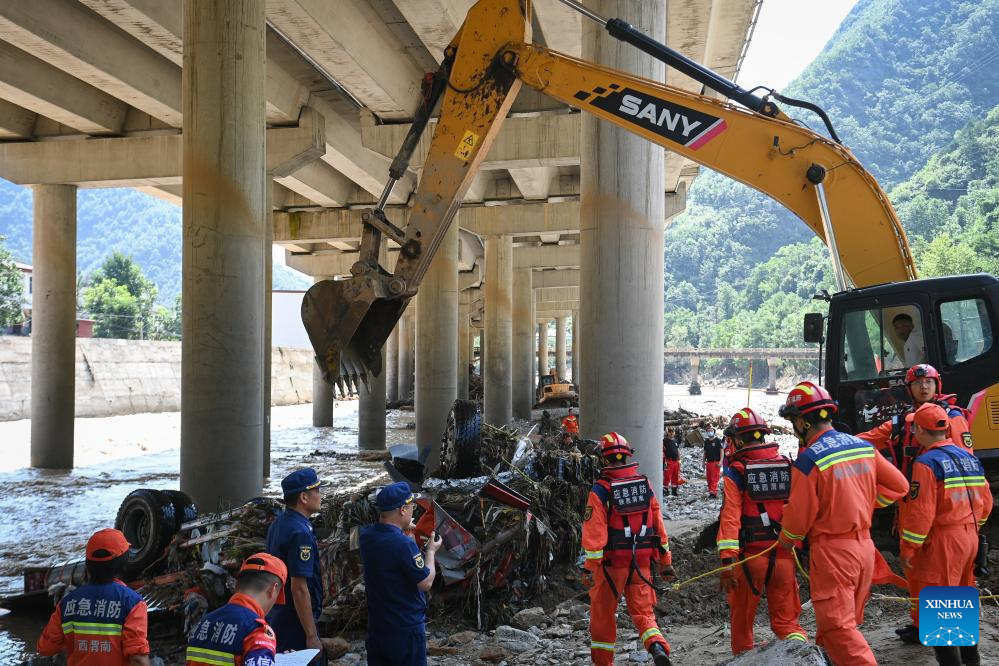 Meanwhile, more than 700 professional rescuers and over 1,500 local people are searching for 31 people who are unaccounted for after their vehicles plunged into a flooding river due to a highway bridge collapse amid torrential rains in northwest China's Shaanxi Province.