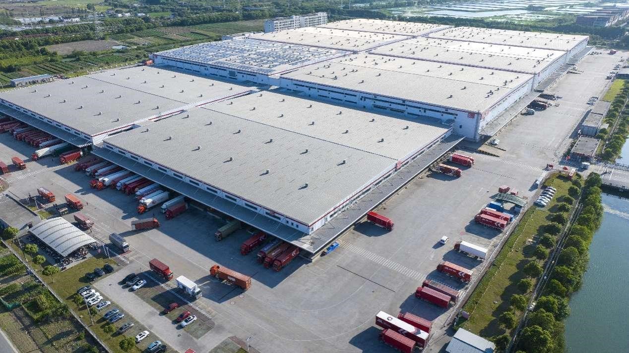 Package delivery trucks wait to be loaded or unloaded in the Kunshan Asia No. 1 Intelligent Logistics Park of Chinese online retailer JD.com, east China's Jiangsu province. (People's Daily Online/Yuan Xinyu)