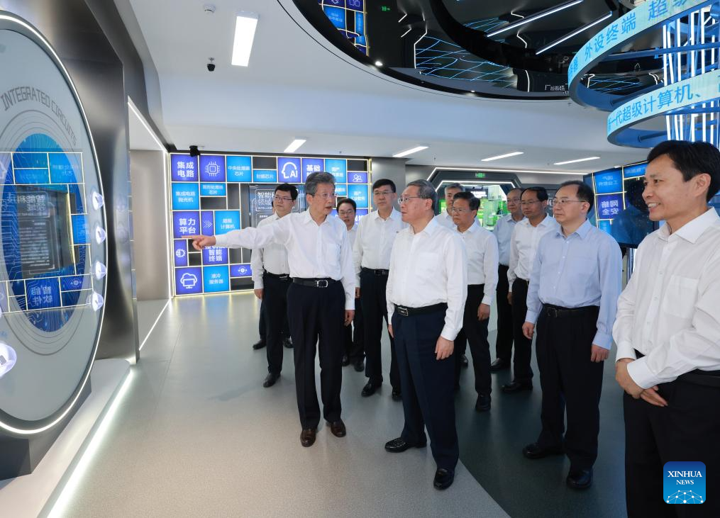 Chinese Premier Li Qiang, also a member of the Standing Committee of the Political Bureau of the Communist Party of China Central Committee, visits a sci-tech innovation park in north China's Tianjin Municipality, July 22, 2024. Li made an inspection tour in Tianjin on Monday. (Xinhua/Wang Ye)