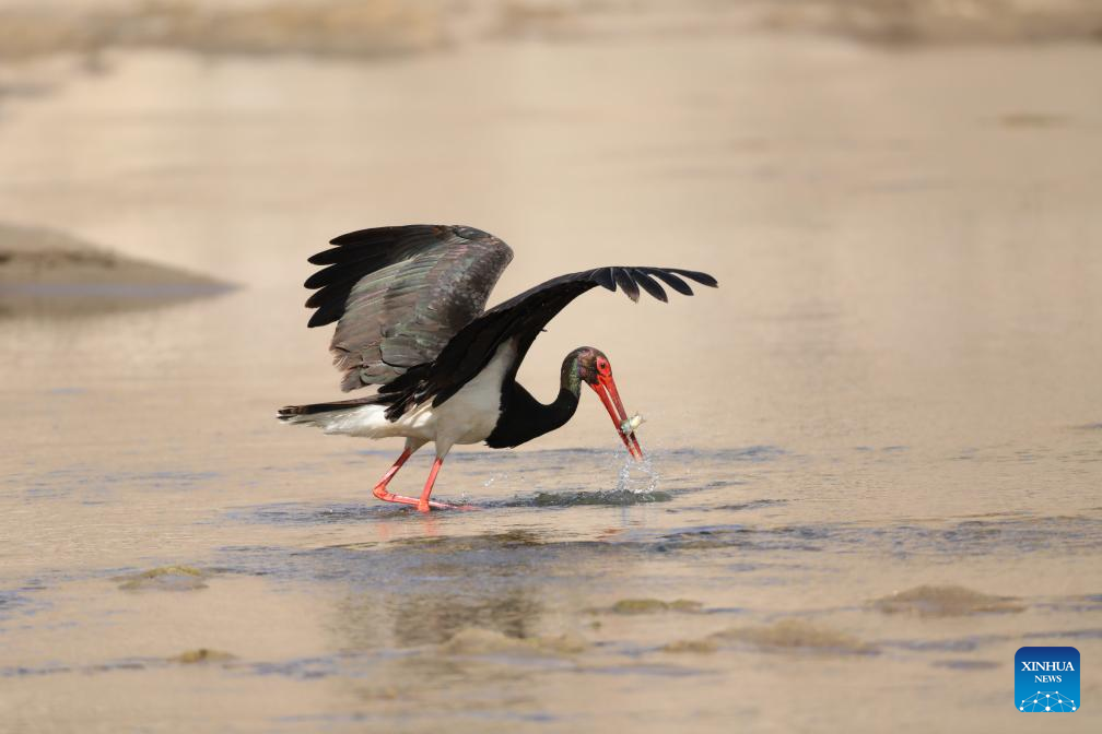 LANZHOU, July 22 (Xinhua) -- With the implementation of enhanced ecological conservation measures, the Heihe Wetland National Nature Reserve in northwest China's Gansu Province, is experiencing a remarkable boom in migratory bird populations, particularly the endangered black stork.