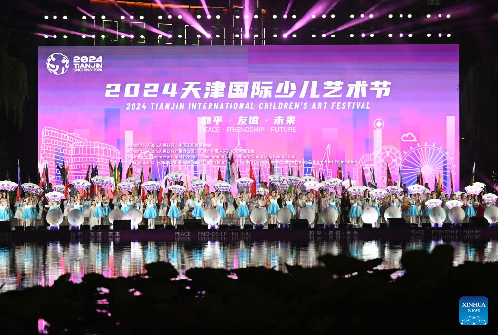 The opening ceremony of the 2024 Tianjin International Children's Art Festival is held in Tianjin, north China, July 22, 2024. The art festival, with the participation of children's art troupe from more than 20 countries and regions, will last until July 26. (Xinhua/Zhao Zishuo)