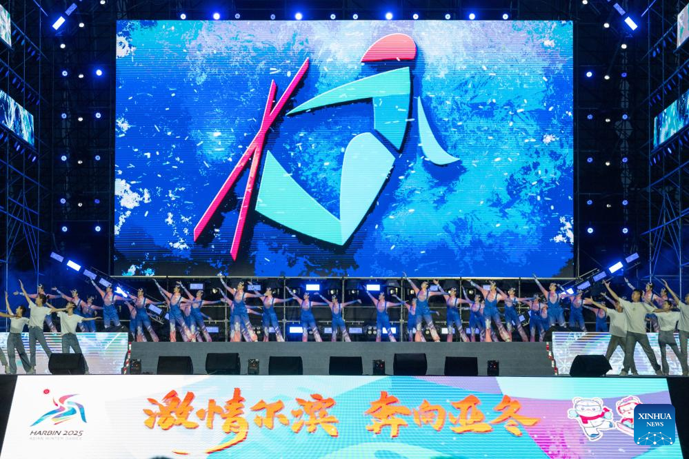 Performers act during a ceremony to mark 200 days to go for the 9th Asian Winter Games Harbin 2025 in Harbin, northeast China's Heilongjiang Province, July 22, 2024. (Xinhua/Zhang Tao)