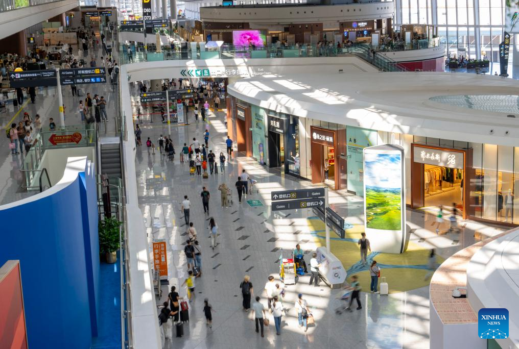Travelers are seen at Beijing Daxing International Airport in Beijing, capital of China, July 18, 2024. With easier entry policies, including a 144-hour visa-free transit policy that expanded to 37 entry ports as of July 15 and pilot visa-free policies for some countries, "on-a-whim travel" to China is becoming a reality. (Xinhua/Cai Yang)