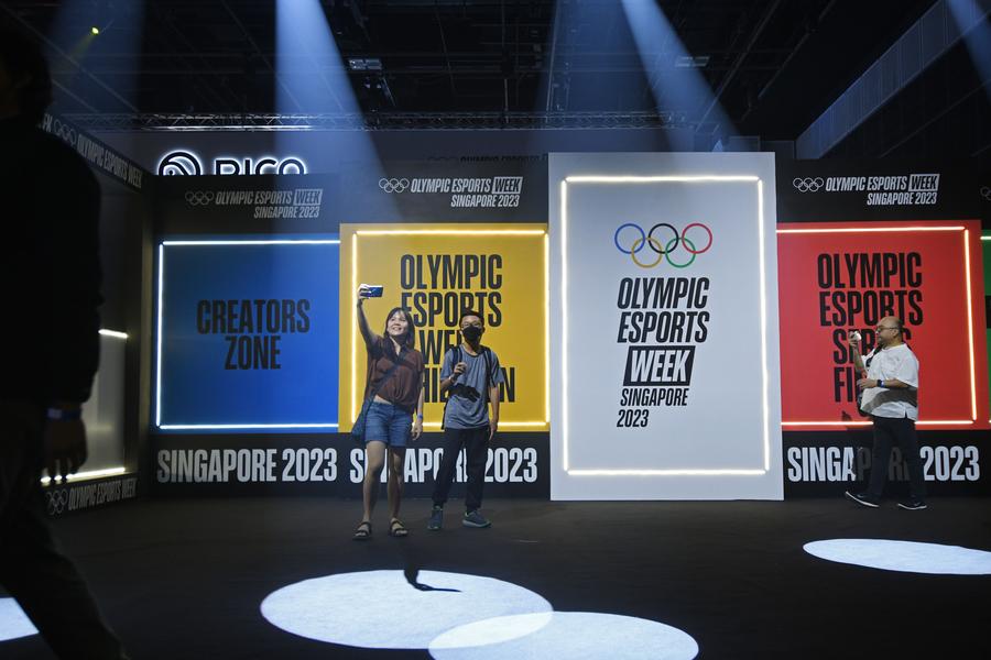People attend the first day of competition at the Olympic ESports Week 2023 held in Singapore on June 23, 2023. (Photo by Then Chih Wey/Xinhua)