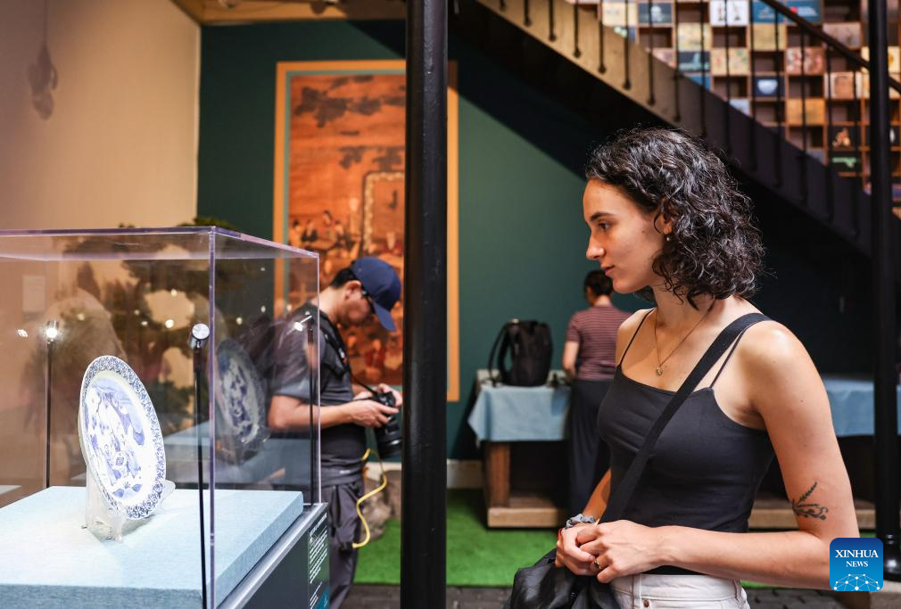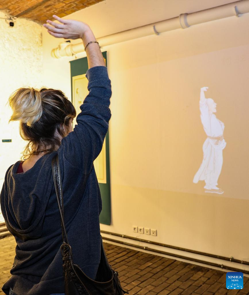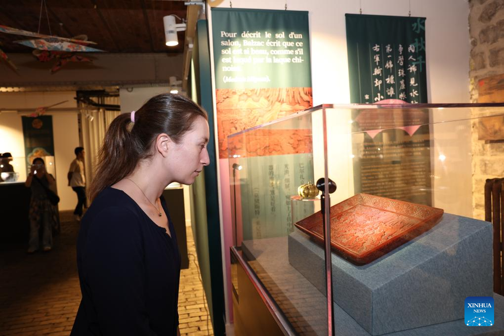 A visitor views an exhibit the Vigor and Sportsmanship Chinese Sports Culture Exhibition ahead of the Paris 2024 Olympic Games in Paris, France, July 23, 2024. (Xinhua/Zhang Fan)