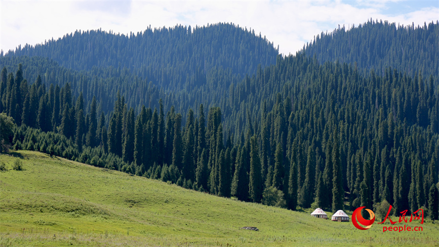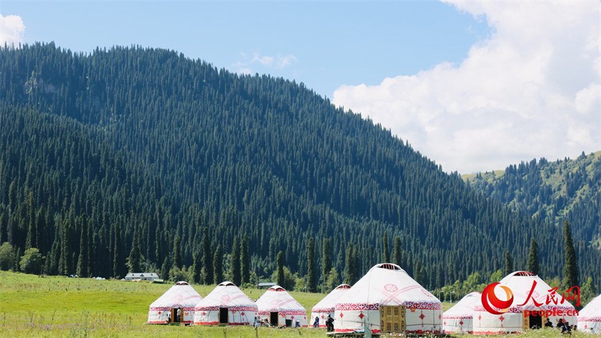 In the summertime, Kuerdening scenic area in Gongliu county, Ili Kazakh Autonomous Prefecture, northwest China's Xinjiang Uygur Autonomous Region, displays captivating scenery. Over the years, the scenic area has witnessed a gradual increase in the number of tourists, thanks to the continuous improvement of tourism infrastructure and service quality.