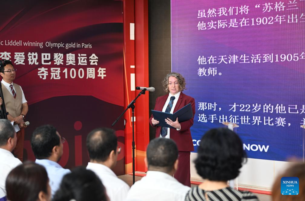 TIANJIN, July 23 (Xinhua) -- China's northern city of Tianjin on Tuesday launched a permanent exhibition to commemorate Scottish athlete Eric Liddell, marking the 100th anniversary of his gold medal at the 1924 Paris Olympic Games and promoting his sportsmanship and internationalism.