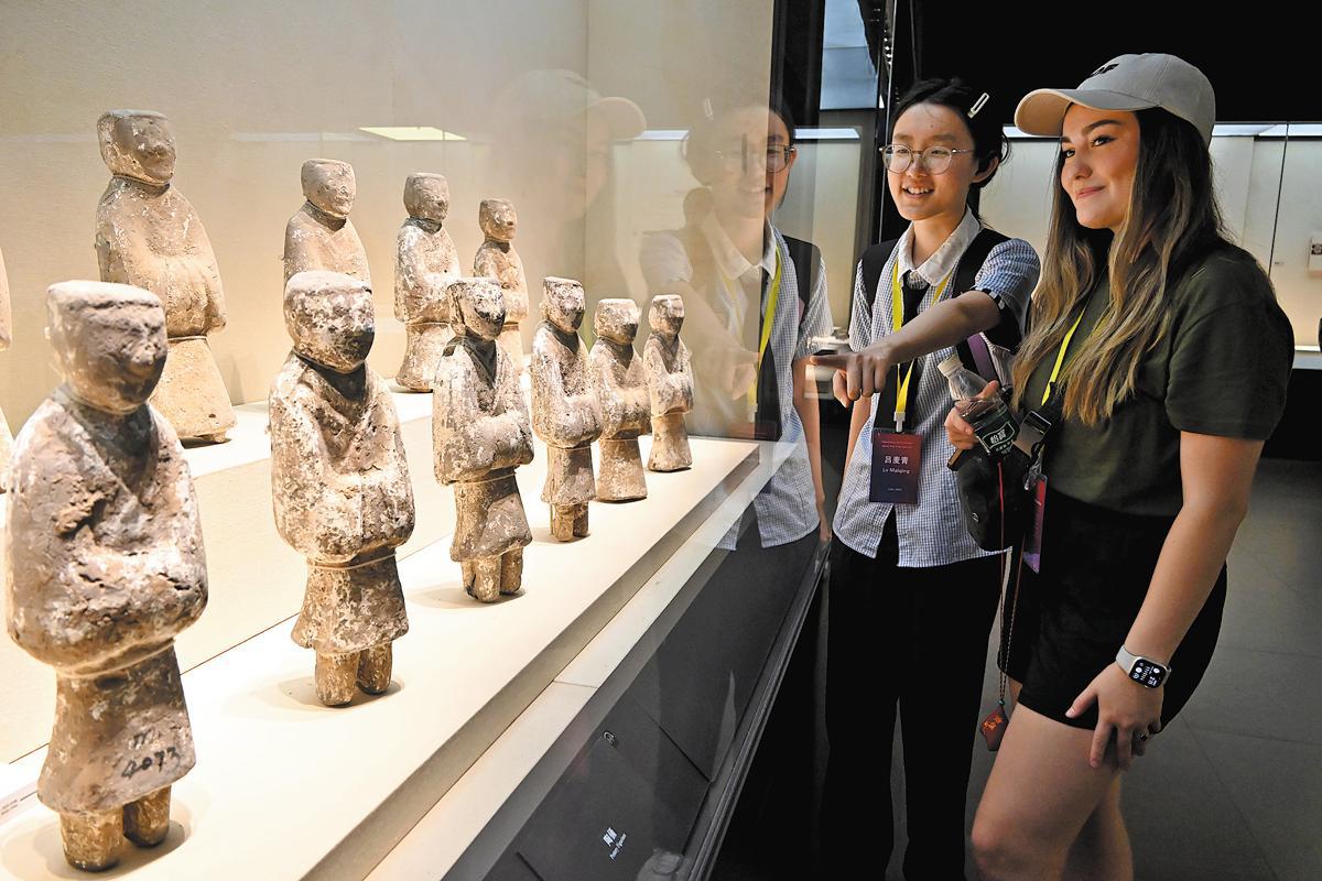 A member of a US high school student delegation from Iowa visits the Hebei Museum in Shijiazhuang on June 9. (CUI YUJIA/CHINA NEWS SERVICE)