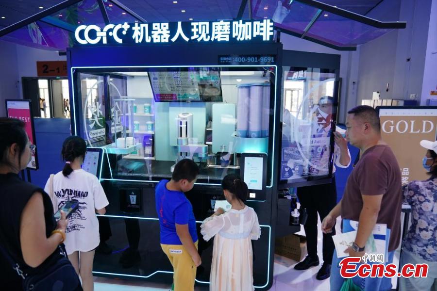 Visitors view a robot at the 8th China-South Asia Expo in Kunming, southwest China's Yunnan Province, July 24, 2024. (Photo: China News Service/Liu Ranyang)