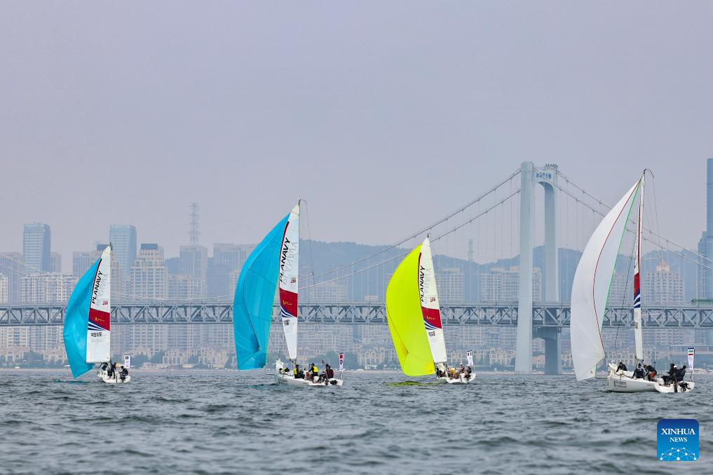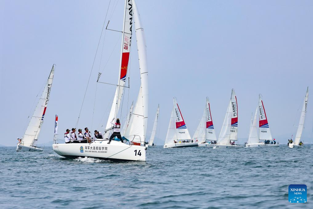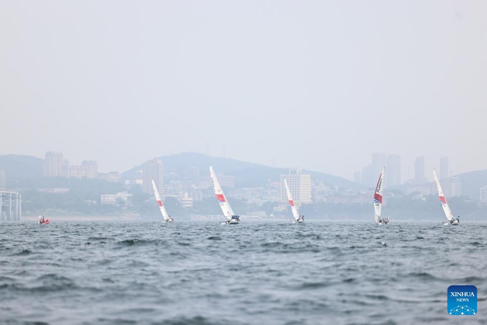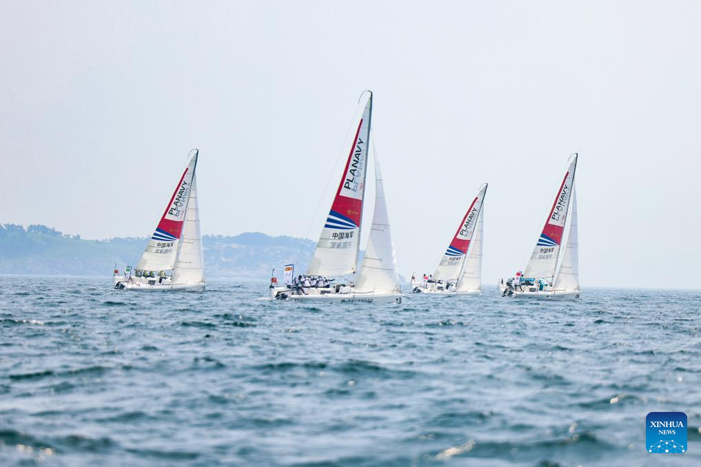The first Navy Cup International Sailing Regatta is held in Dalian, northeast China's Liaoning Province, July 24, 2024. (Photo by Li Haotian/Xinhua)