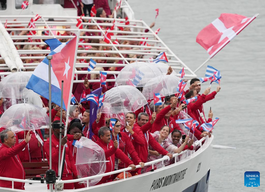 Members of the delegations of Cuba and Denmark are seen during the opening ceremony of the Paris 2024 Olympic Games in Paris, France, July 26, 2024. (Xinhua/Wan Xiang)
